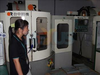 The CNC (Computer Numerical Control) lathe below is used to modify the doors of PC cases. It doesn't, though, cut the original slits in the panel - a precision powered press with the right tooling does that job more effectively.