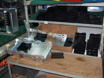 Case accessories are picked and installed in boxes into the drive cages of the case.