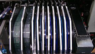 The the robot, fed with a mainboard PCB, picks up upto 6 components from the reels (it has 6 'hands') and places the components on the mainboard in quick-fire fashion, before going back for upto another 6. You can see it's managed by software, which instructs the robot what components to pick up and where, to pin-point accuracy, they're to be placed.