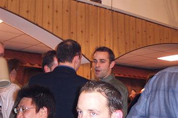 Only joking! Everything was peaceful, the ATI and NVIDIA guys and gals enjoying a great night together, having a laugh and enjoying each other's company in a rare moment outside of the usual pushing and shoving that defines the presented world of 3D graphics. Everyone knows everyone else and friendships exist between the two. NVIDIA's Andrew Humber, fresh from his liason with Lars, and Adam Foat, flank Chris as they enjoy yet more beer. Our Nick lurks in the background, keeping the peace.
