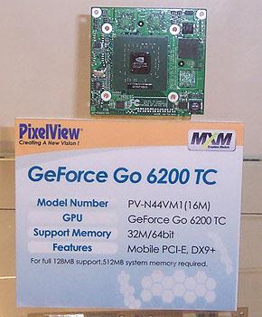 Finally you get the GeForce6 Go 6800, with a very high level of performance in the space that MXM will occupy. 256MB on a 256-bit wide bus, all on a Type3 module, is appealing. I wonder who the first ODM to design a chassis that'll take a pair of Type2 or Type3 modules will be. At any rate, PixelView let me know that they've been working with a few ODMs on MXM validation.