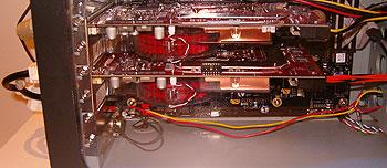 With the NDA expiring for ATI Crossfire coverage around the web this morning, all the talk at Computex this morning is of partner solutions on display. I wandered by PowerColor's stand to find it running in an unassuming box on the far wall of their stand. Using Radeon X850 XT CrossFire Edition and a regular X850 XT, the system is sat looping FutureMark's 3DMark05 benchmark.