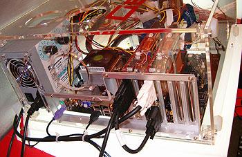 GeCube's Jeff Fu has stolen the Crossfire show at Computex, with a high-end X850 Crossfire Edition setup using his Uniwise cooler design that makes the dual-slot reference design a quieter, single-slot setup instead. Clever use of heatpipe technology let the man do so. So I present to you, running on a Gigabyte Crossfire Edition mainboard, X850 Crossfire Edition done properly, to shame the rest.
