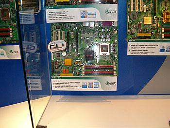 I'm posting this from China, having escaped the clutches of Taipei and Computex to take in some mainboard manufacturing in Shenzhen. However, just before I left I had a nice chat with EPoX, who showed me their latest i945P board. Look closely at the mainboard below and you'll see a pair of PEG16X electrical slots for graphics boards. The first is connected to the PCI Express controller on the i945P, the second is fed by 4 lanes from the ICH7R.