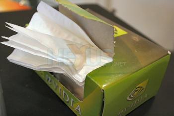 So you’ve got to wonder just what NVIDIA’s message is by handing out tissues. Is it that they’re just being helpful and creating a self-perpetuating system whereby a gorgeous Asian chick in a skimpy clothing hands you tissues you’ll be needing later ‘cos a bird in very little handed you tissues?