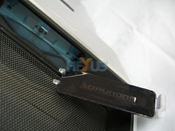 What? Yes, really. But don't go thinking that this is some sort of HD 1080p playback on the side panel, it's rather more modest than that. An LED hidden in the underside of the front panel projects a blue light downwards onto the surface upon which the case sits.