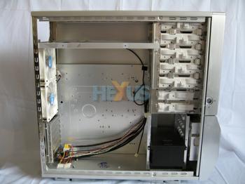 A simple tool-free system is used for the external bays at the front of the machine but there's nothing comparable at the rear for expansion cards. Out of the box, two 3.5in HDD bays are available. These are located at bottom front and at 90 degrees to the 5.25in bays. As a result, these lower bays have easy access from the side.