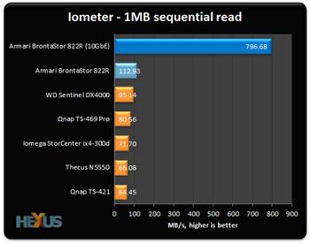 The Armari BrontaStor 822R has been tested in two states; firstly via a standard Gigabit Ethernet connection; secondly via optional Intel 10 Gigabit network adapters.